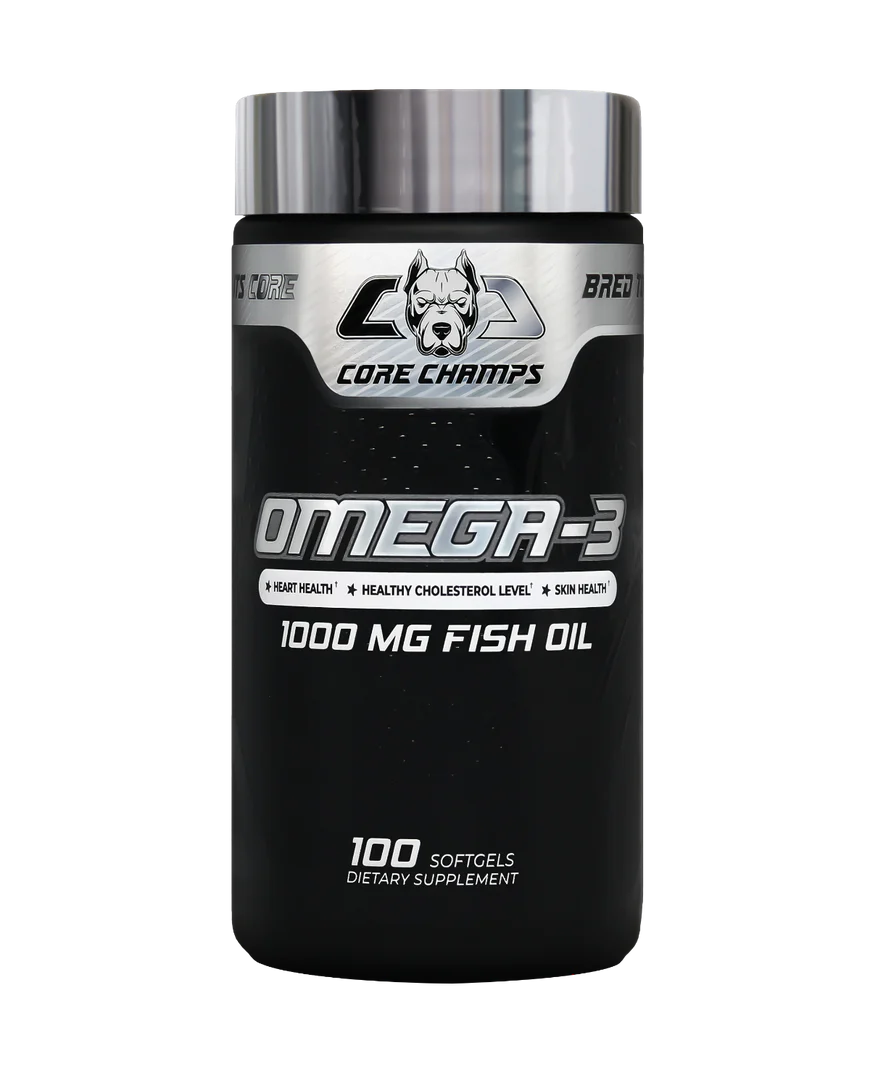 Core Champs Omega-3 Fish Oil delivers premium-quality essential fatty acids that support your heart, brain, joints, and skin health. Each softgel capsule provides 1000mg of pure fish oil, containing EPA and DHA — the most beneficial omega-3 fatty acids for overall body function and performance.