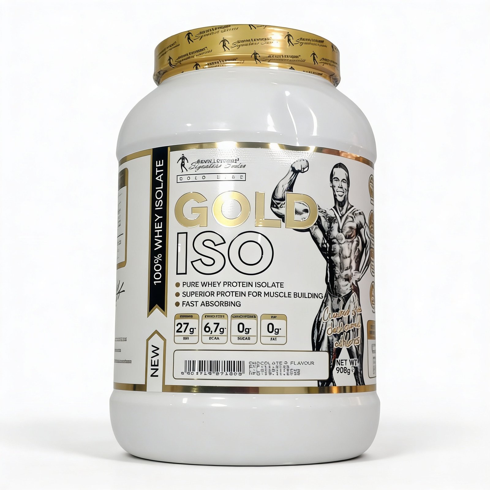 Each serving of Kevin Levrone Gold ISO Whey Protein delivers 27g protein and 6.7g BCAAs with zero sugar and zero fat, making it ideal for cutting phases and lactose-sensitive users.