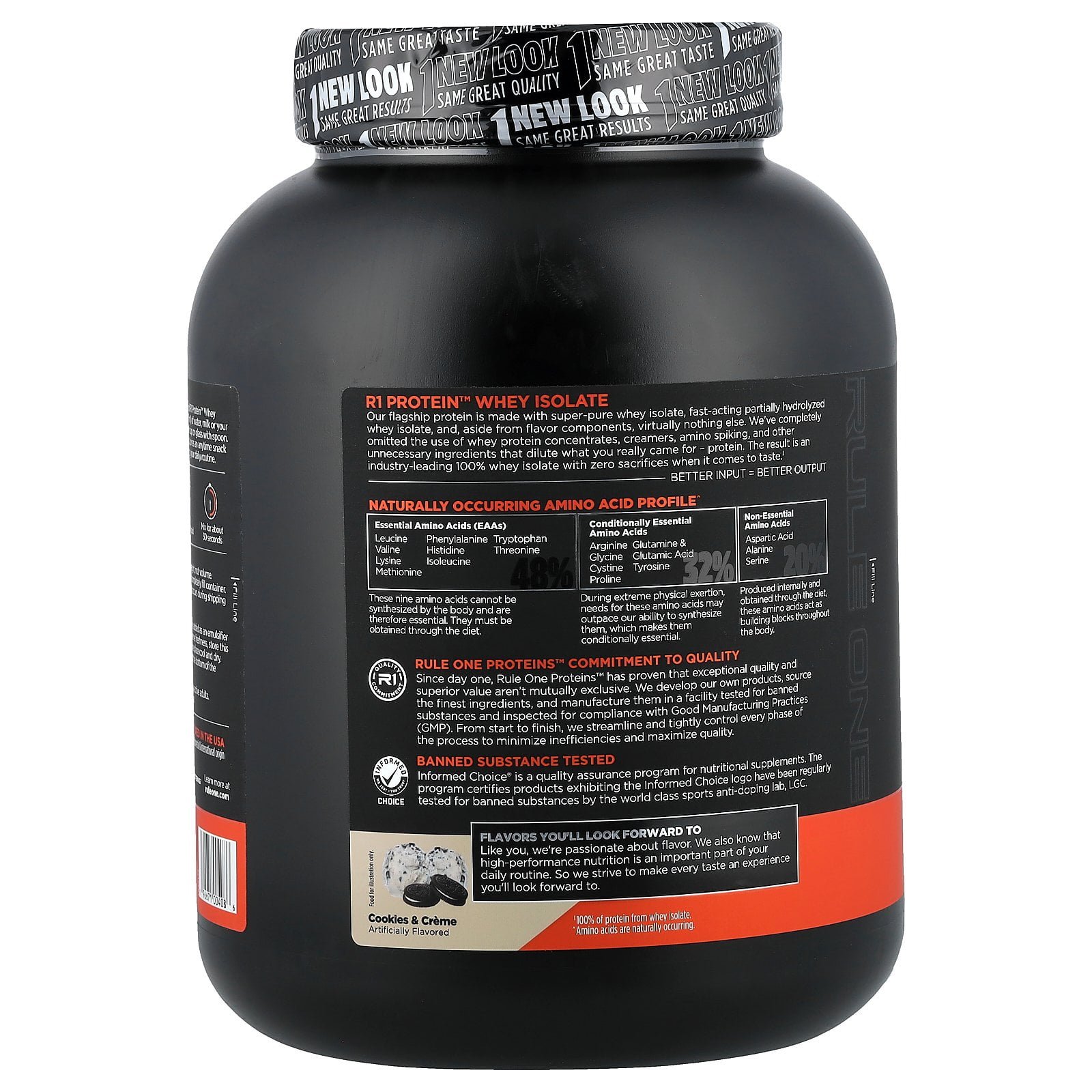 This protein formula is as pure as it gets. With 25g of protein and over 6g of BCAAs — entirely from intact and hydrolyzed whey protein isolates — R1 Protein helps support the recovery and growth aspirations of the most ardant muscle builders.
